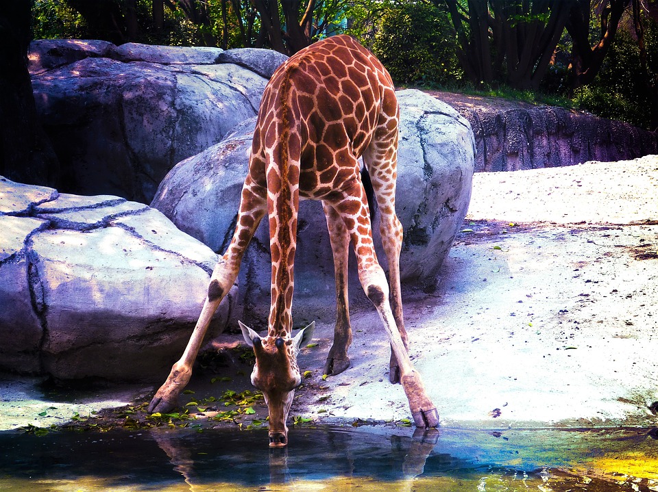 Жирафы - очень мирные и спокойные животные. Большую часть дня они проводят кушая листья. Они спят всего несколько часов в день, и это самый короткий сон среди всех наземных животных.