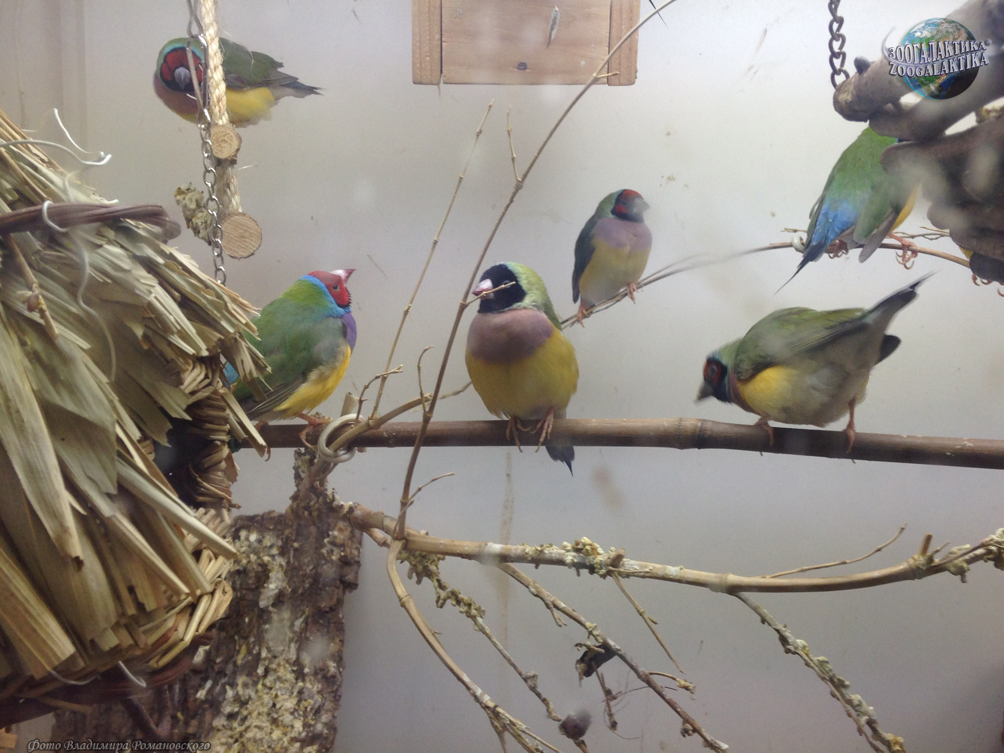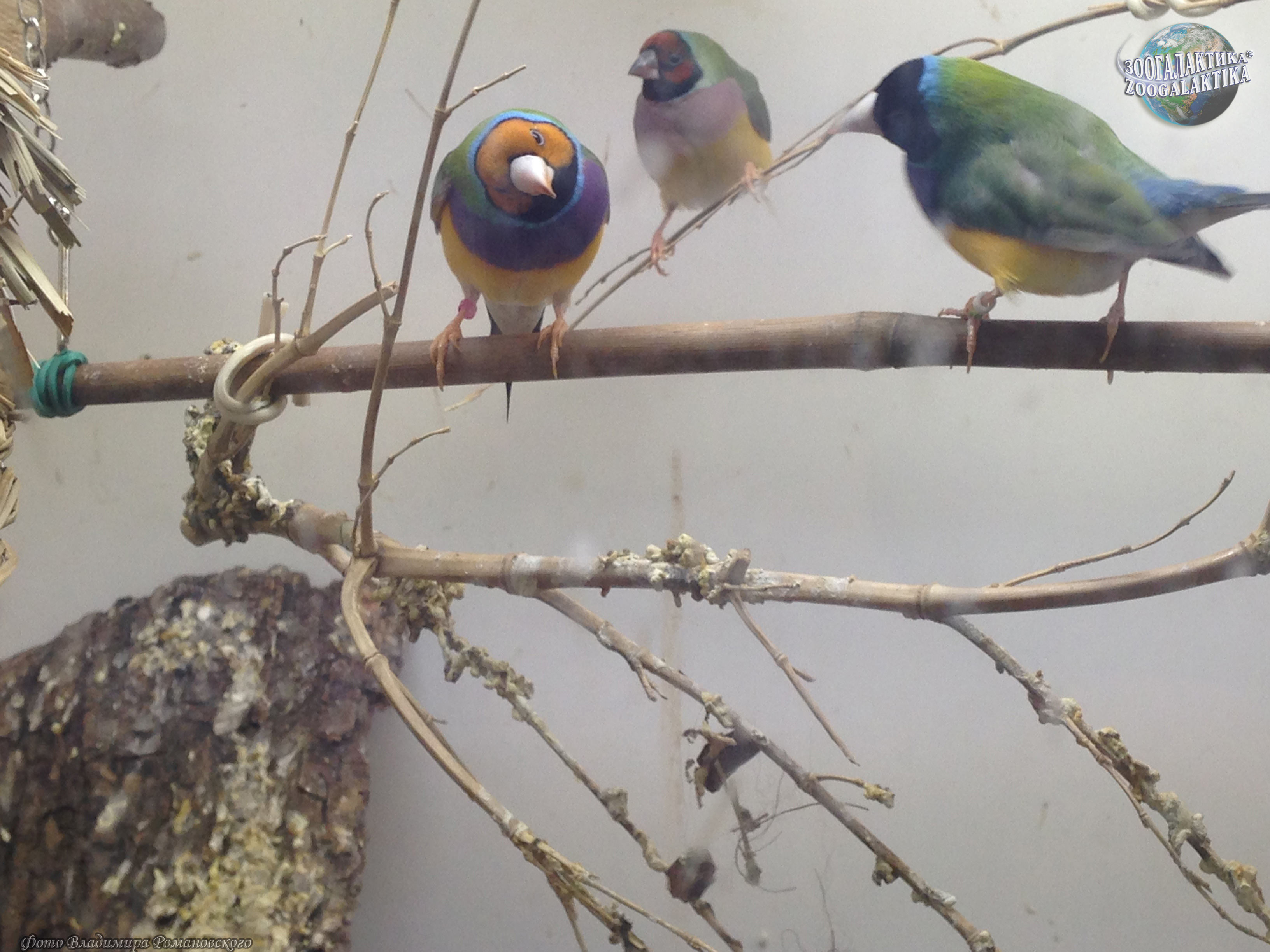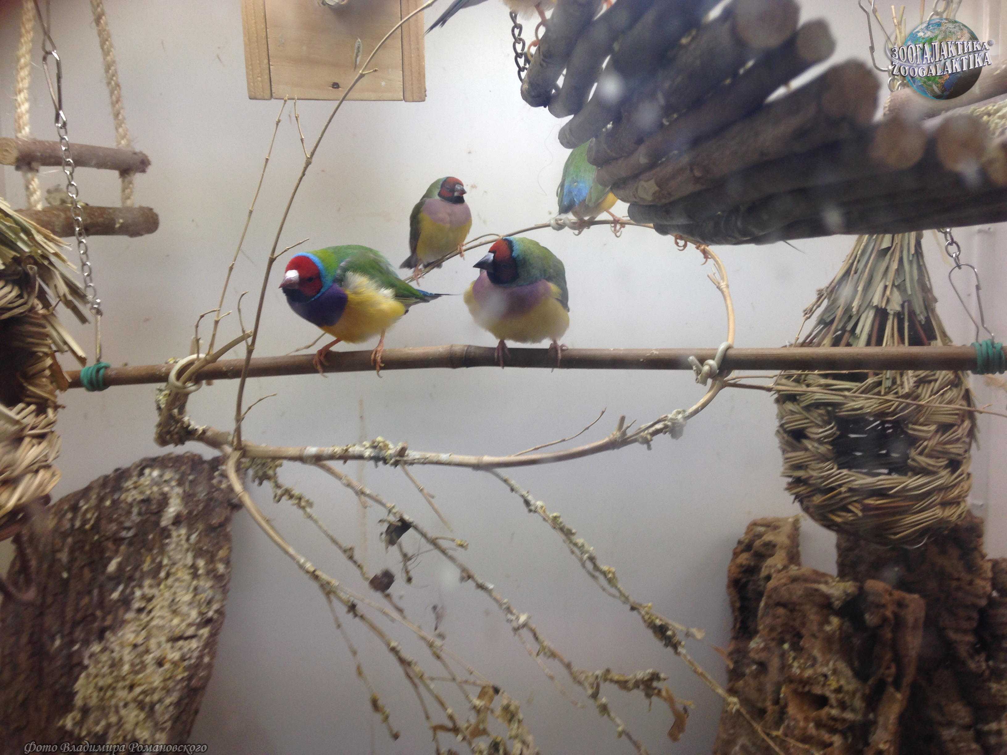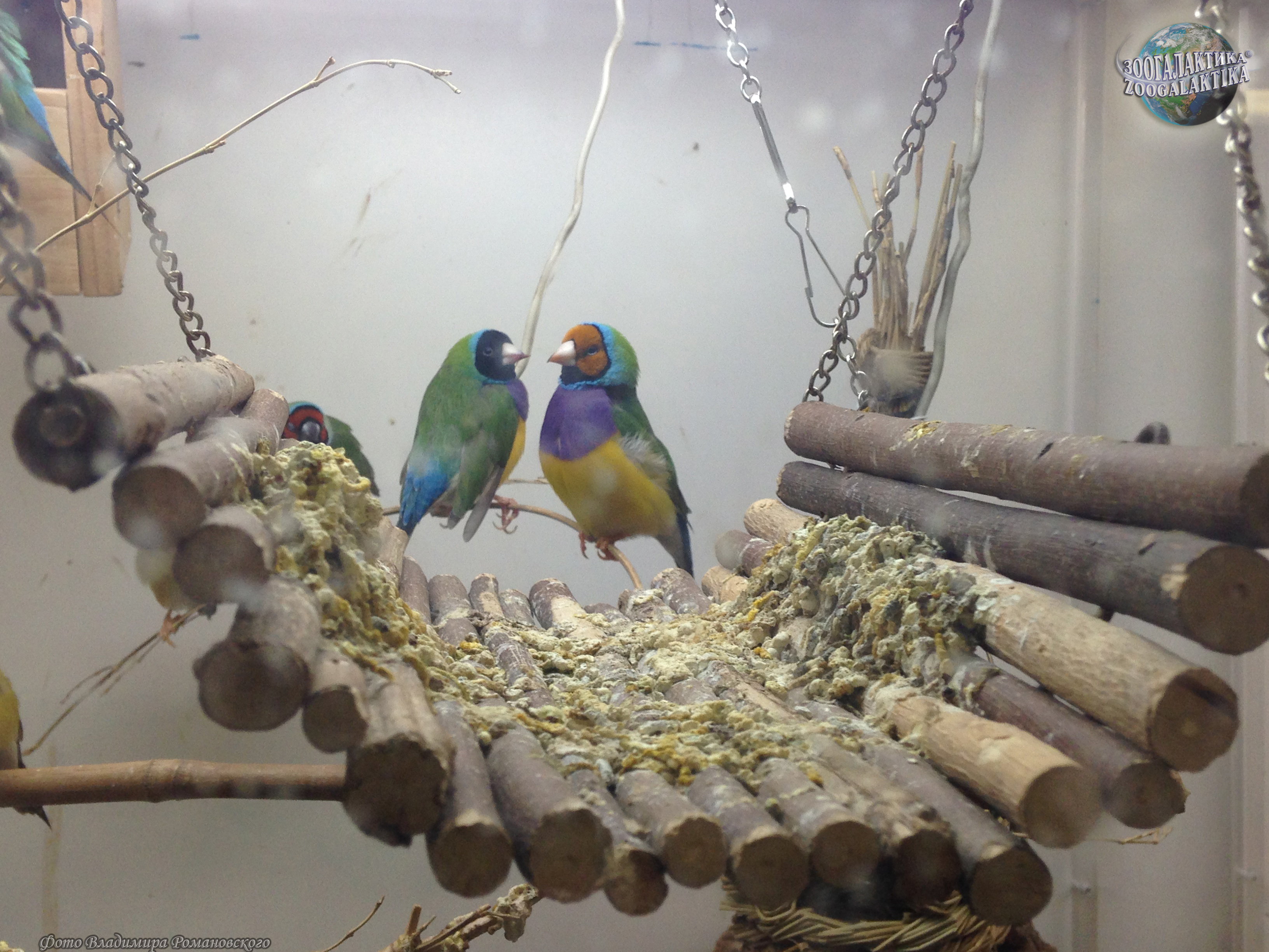Амадина Гульда (Erythrura gouldiae) - одна из самых ярко окрашенных птиц. Обитают они в Северных регионах Австралии, где встречаются в травянистых местностях с отдельно стоящими деревьями. Амадины обычно вьют свои шарообразные гнезда на деревьях, в кладке у них 4-8 белых яиц. Питаются амадины Гульда семенами трав и беспозвоночными.