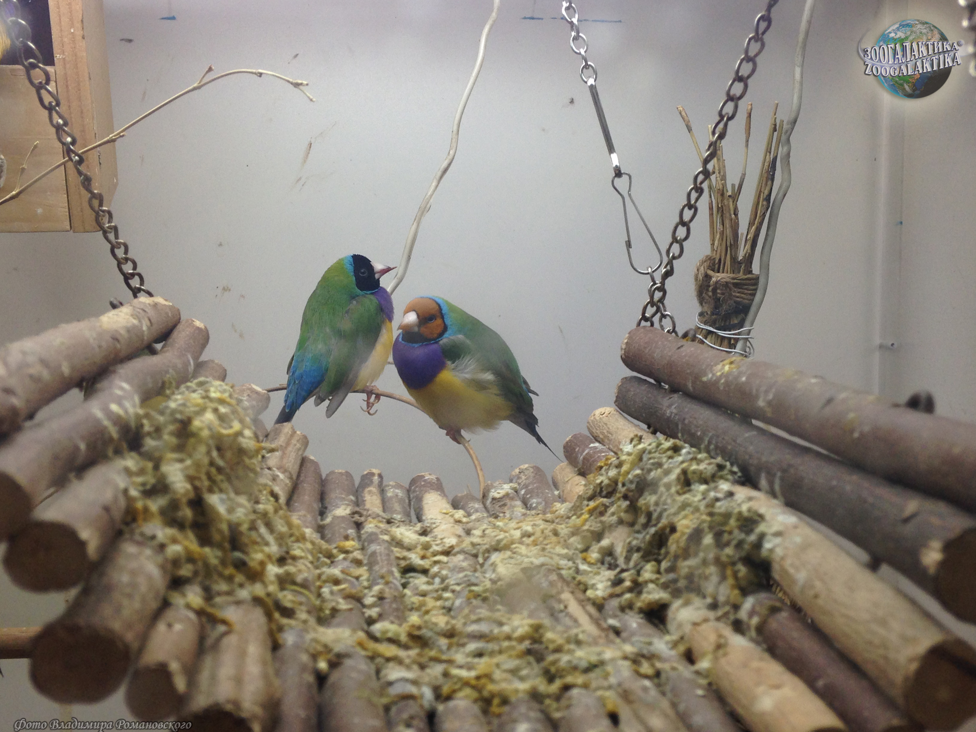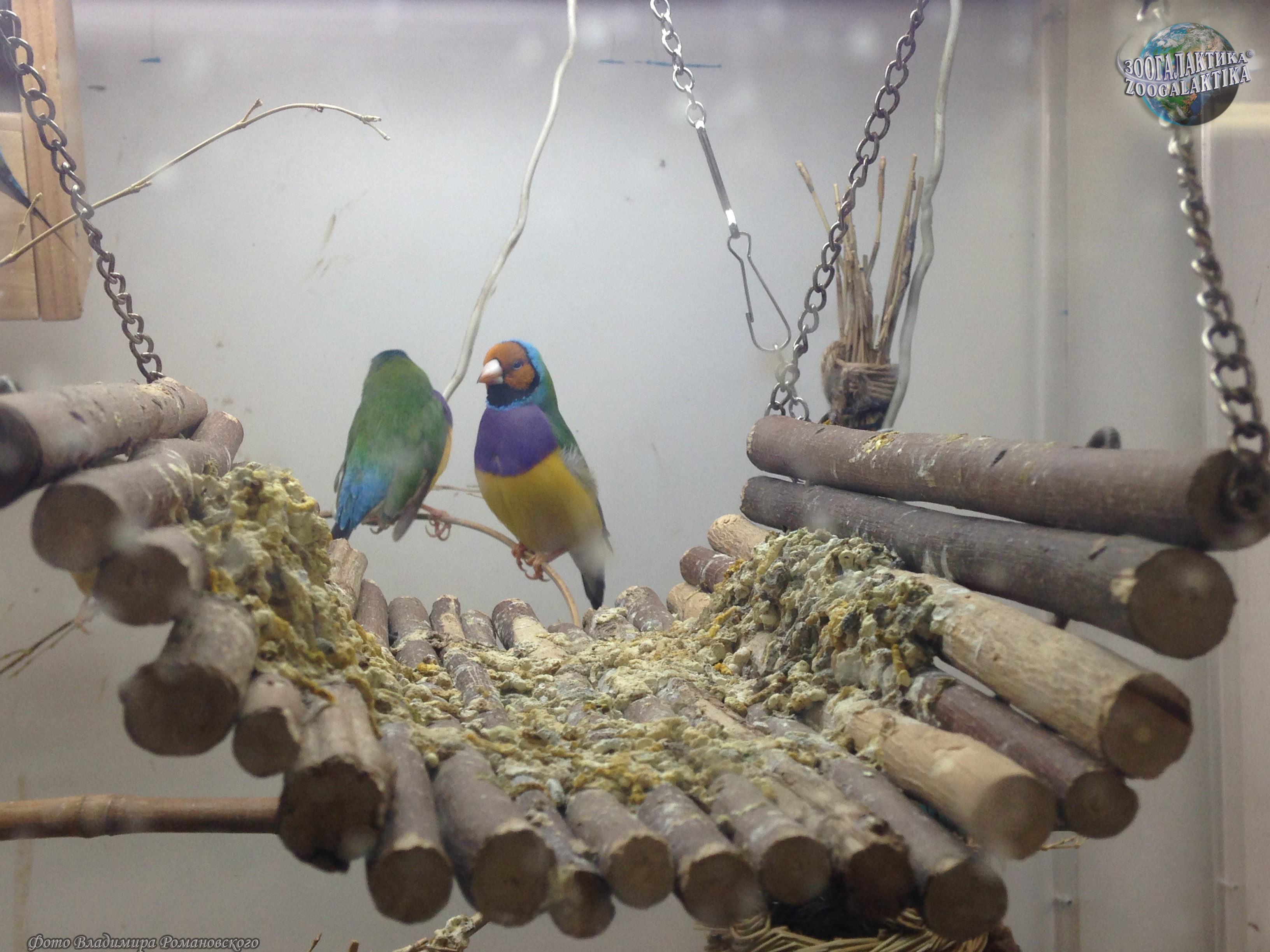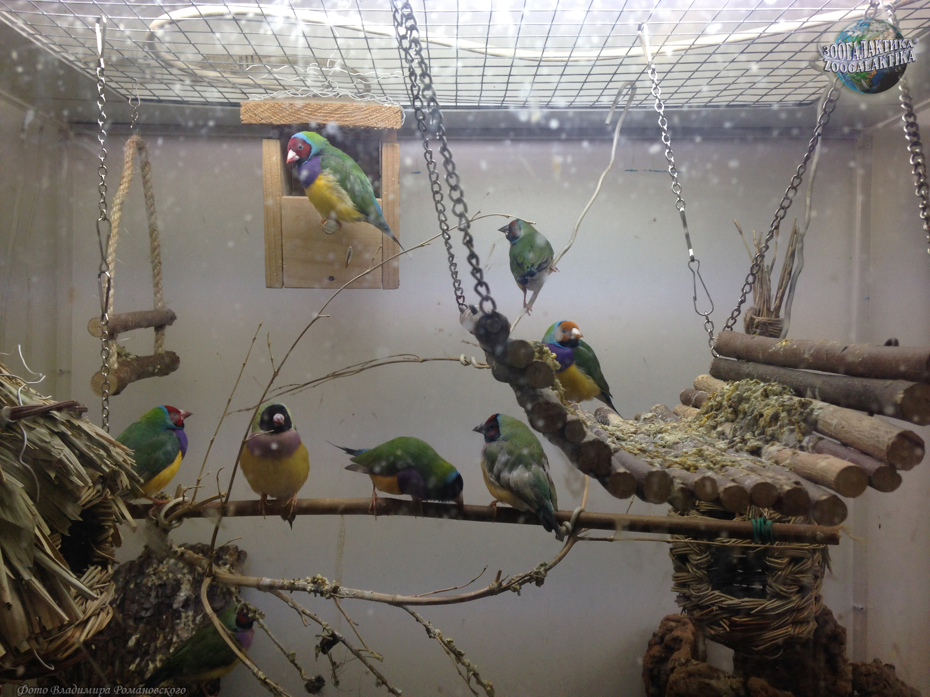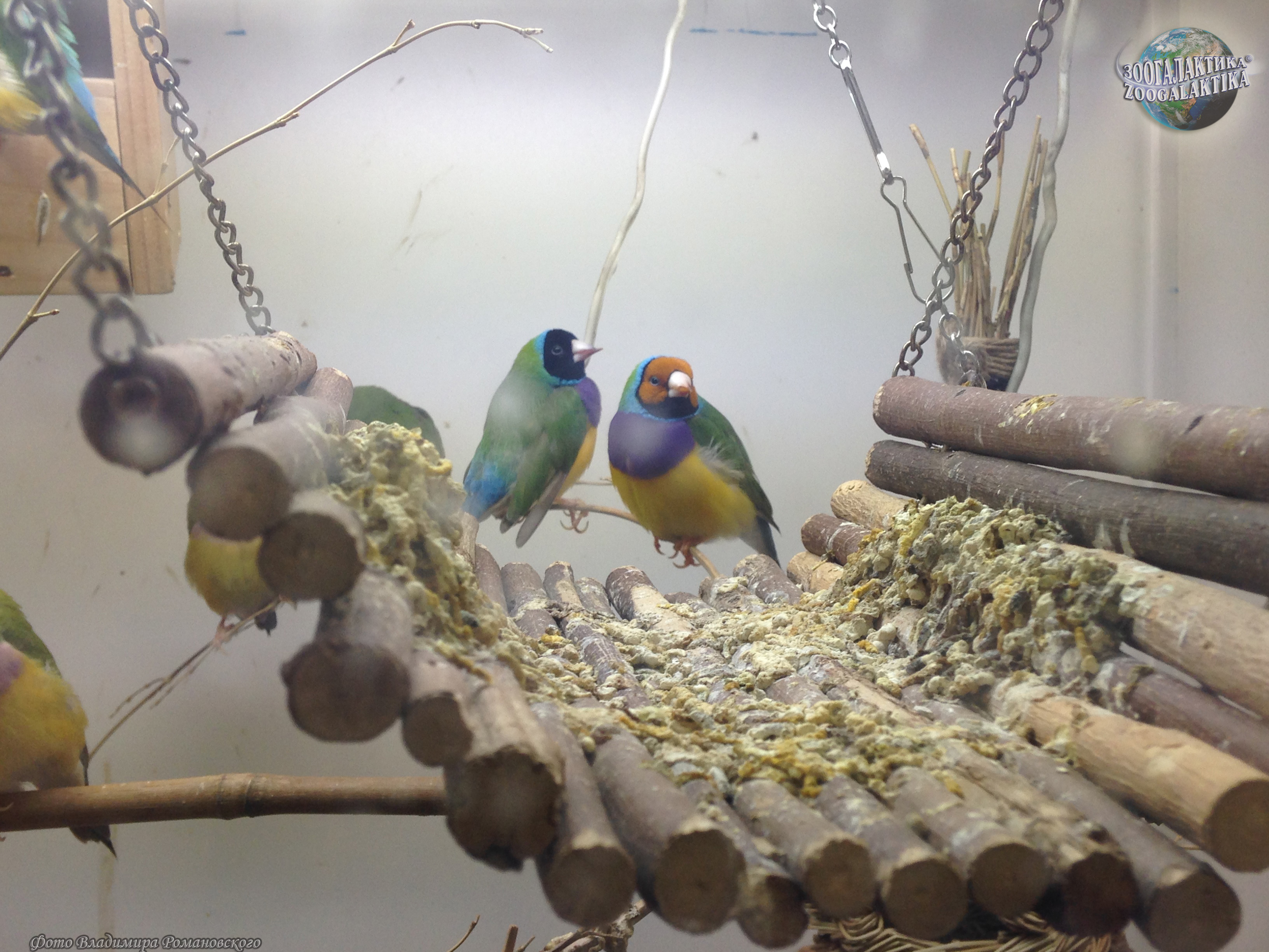 Амадина Гульда (Erythrura gouldiae) - одна из самых ярко окрашенных птиц. Обитают они в Северных регионах Австралии, где встречаются в травянистых местностях с отдельно стоящими деревьями. Амадины обычно вьют свои шарообразные гнезда на деревьях, в кладке у них 4-8 белых яиц. Питаются амадины Гульда семенами трав и беспозвоночными.