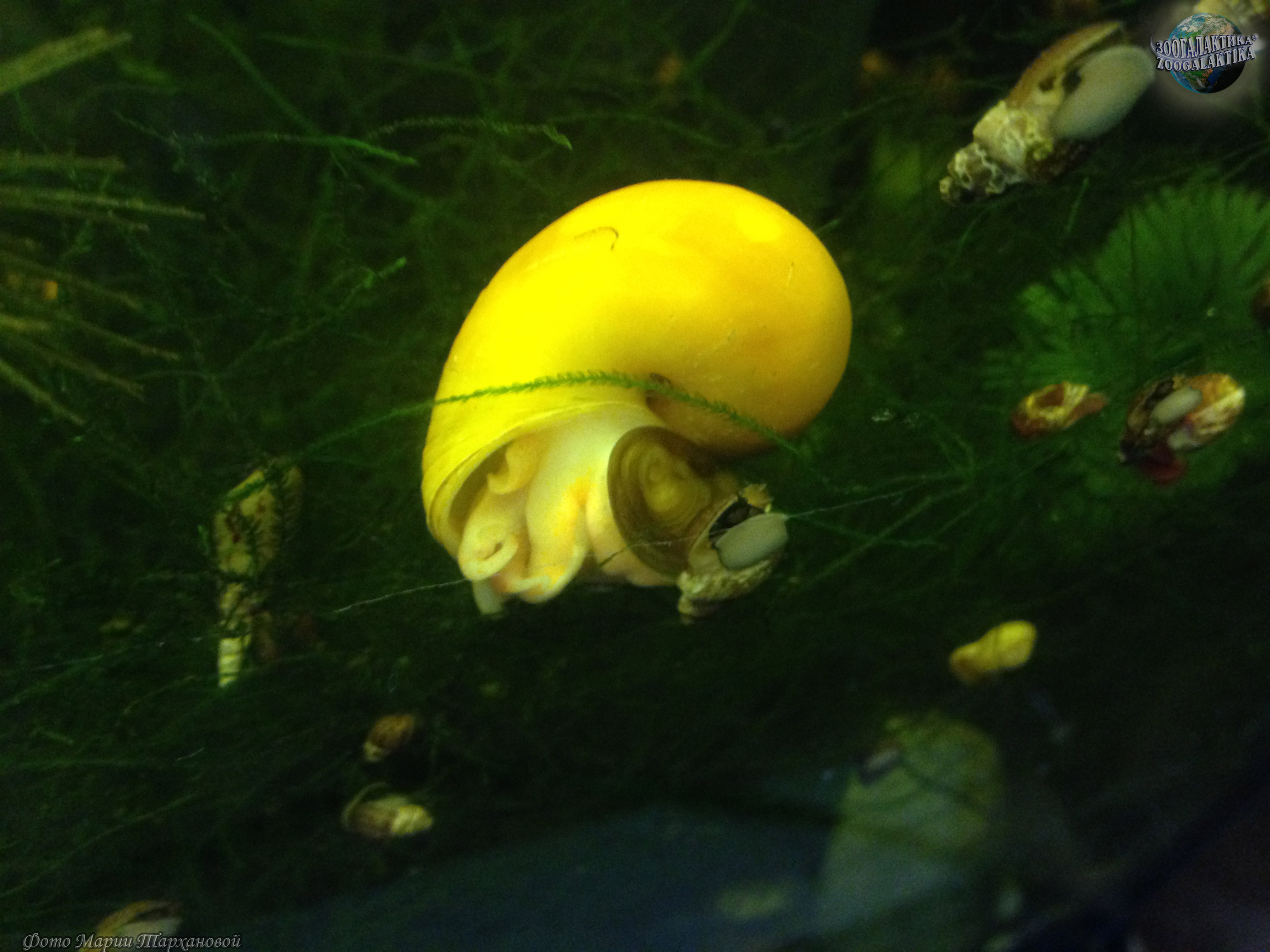 Ампуллярии появились в Европе в прошлом веке. Привезли их из Южной Америки. Этот вид широко распространен в странах тропического пояса и обитает в стоячих или медленнотекущих водоемах - прудах, болотах, реках. Эти улитки привычны к низкому качеству воды. Внешне ампуллярии напоминают прудовиков. Естественный цвет их спирально завитой раковины бледно-коричневый, с широкими темными концентрическими полосами, но при разведении в неволе наиболее популярными оказались альбиносы желтого цвета. В случае опасности или при неблагоприятных условиях ампуллярия использует роговую крышечку, которая подобна дверце, закрывающей раковину, когда улитка прячется в нее. Эти моллюски - амфибии, способные выходить за переделы воды и хорошо приспособленные к такому образу жизни. Даже икру, спасая ее от водных хищников, они откладывают на суше.