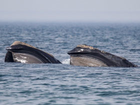Органы дыхания китообразных устроены очень своеобразно. Дыхало - одно или два наружных носовых отверстия - расположено на вершине головы и открывается лишь в момент короткого дыхательного акта выдоха-вдоха, производимого сразу после выныривания. Вследствие особого строения гортани воздухоносный путь отделен от пищевого. Это позволяет безопасно дышать, если вода или пища находятся в ротовой полости. Китообразные могут долго (кашалоты и бутылконосы до 1,5 часов) находиться под водой с одним и тем же запасом воздуха: большая емкость легких и богатое содержание мышечного гемоглобина позволяют им уносить с поверхности повышенное количество кислорода, который расходуется очень экономно: во время ныряния деятельность сердца (пульс) замедляется более чем в двое и ток крови перераспределяется так, что кислородом снабжаются в первую очередь мозг и сердечная мышца. Эти органы при длительном погружении получают кислород также с артериальной кровью из тончайшего разветвления кровеносных сосудов. Менее чувствительные к кислородному голоданию ткани (особенно мышцы тела) переводятся на голодный паек. Мышечный гемоглобин, придающий мускулатуре темный цвет, снабжает мышцы кислородом во время дыхательной паузы. Пониженная чувствительность дыхательного центра к накоплению углекислого газа в крови позволяет китообразным удлинять дыхательную паузу и использовать ее для кормежки.