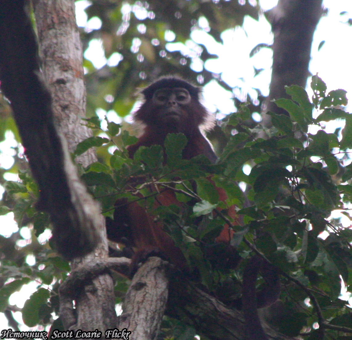Красный колобус (Piliocolobus badius) занесён в Красную книгу МСОП в статусе "вымирающий вид"