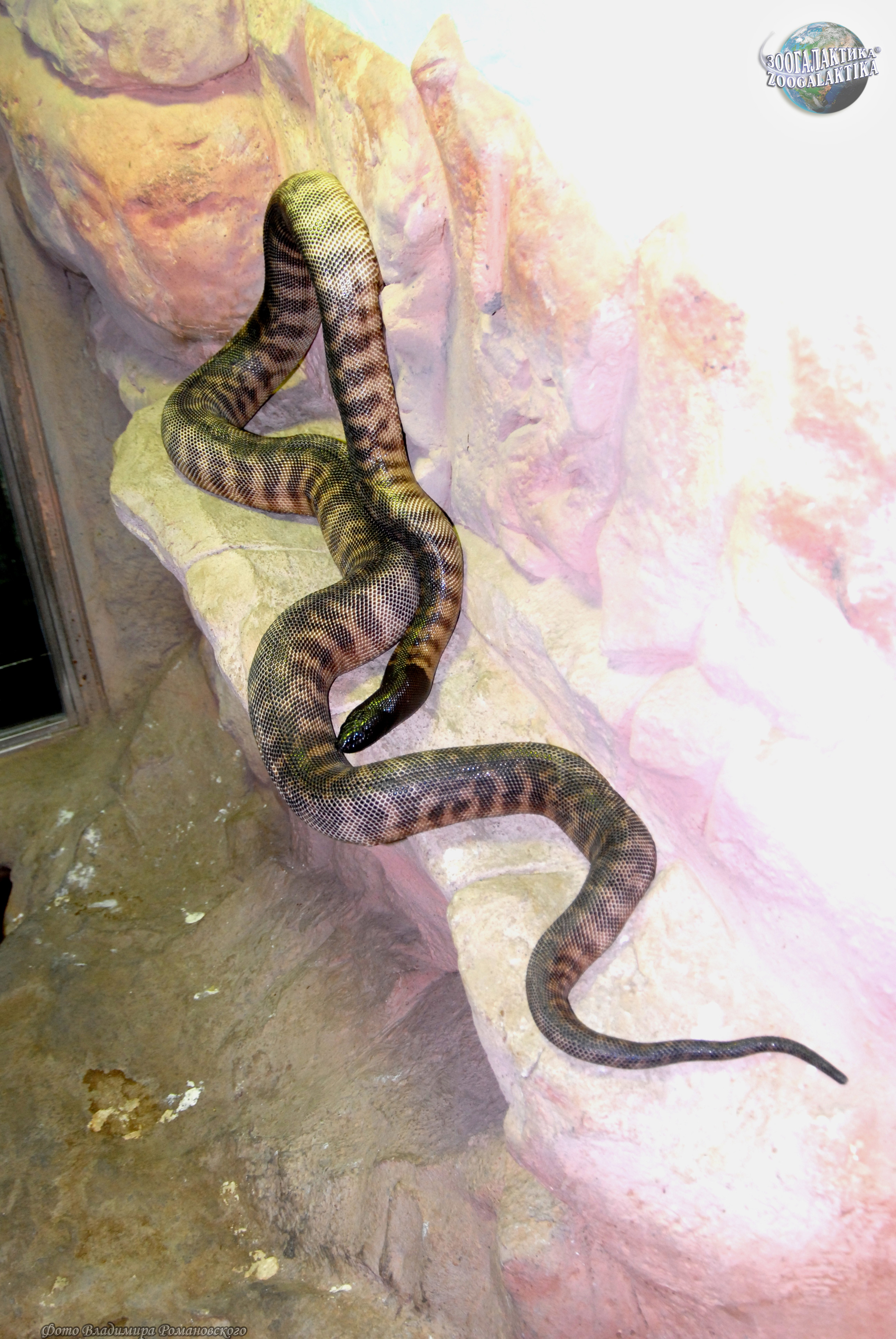 Длина его тела 1,5, максимум — 2,5 м. Окраска тёмно-коричневая, на спине чёрные поперечные полосы, а на боках — жёлтые. Самой запоминающейся особенностью этой змеи является ее чёрная и блестящая голова.